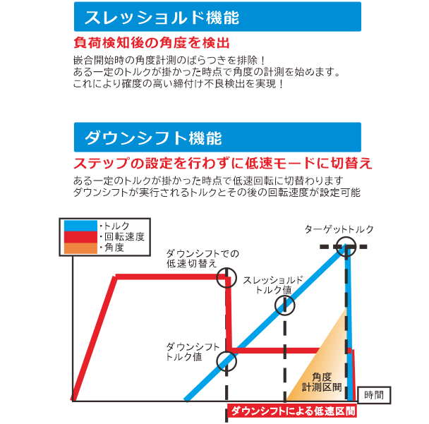 ●回転角度・トルクの閾値の設定可能、ねじ締め不良を確実に検知