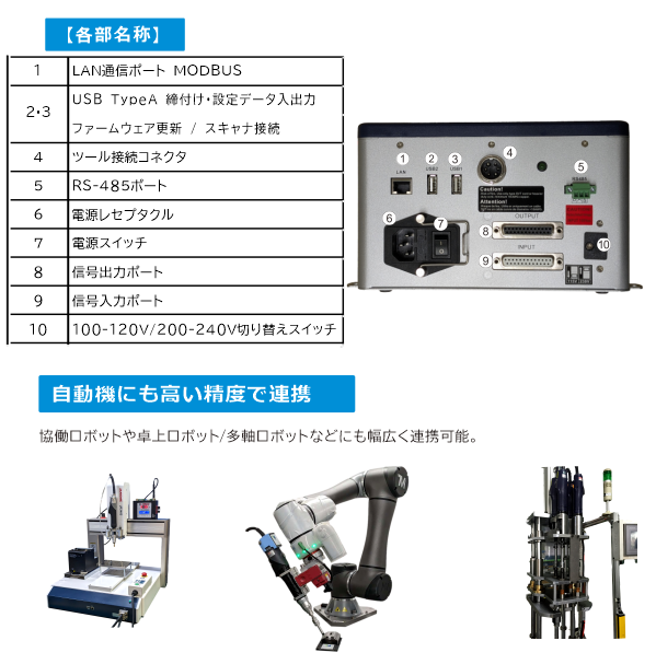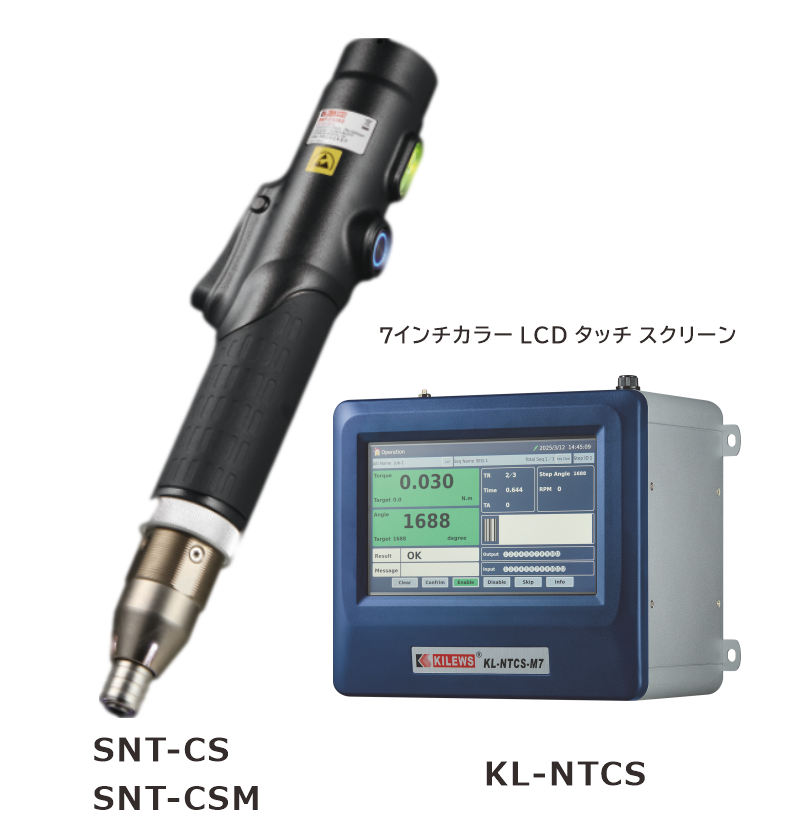 SNT-CS(KL-NTCS)トランスデューサーと角度エンコーダーを搭載!シリーズ名 締付け過程を見ながら、データ保存が行える為、トレーサビリティーに貢献! チャンネルごとにIOの個別設定可能、自動機やロボットを高精度に連携